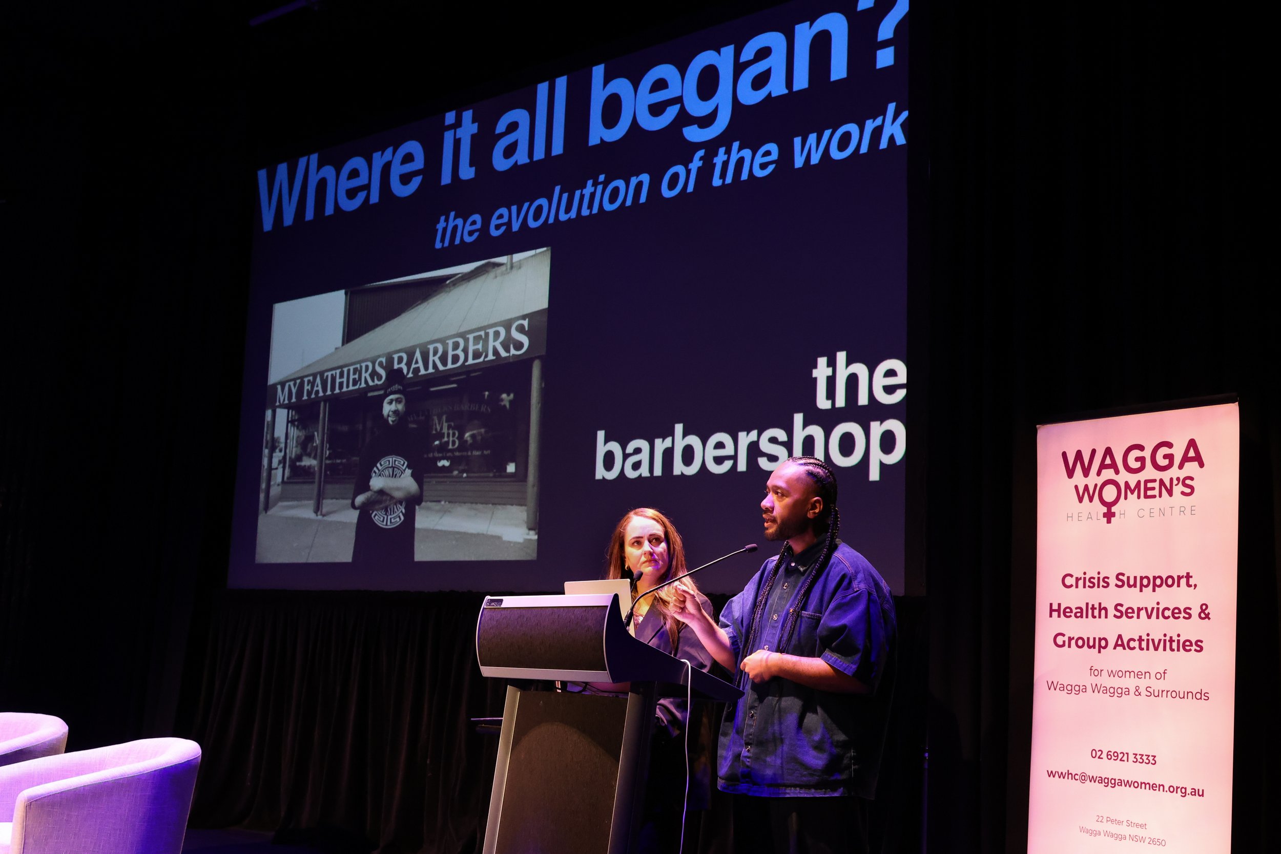 The program centred on a keynote presentation delivered to over 200 community members at the Riverina Playhouse, creating space for honest conversation about trauma, masculinity, responsibility, and the role communities play in ending violence.